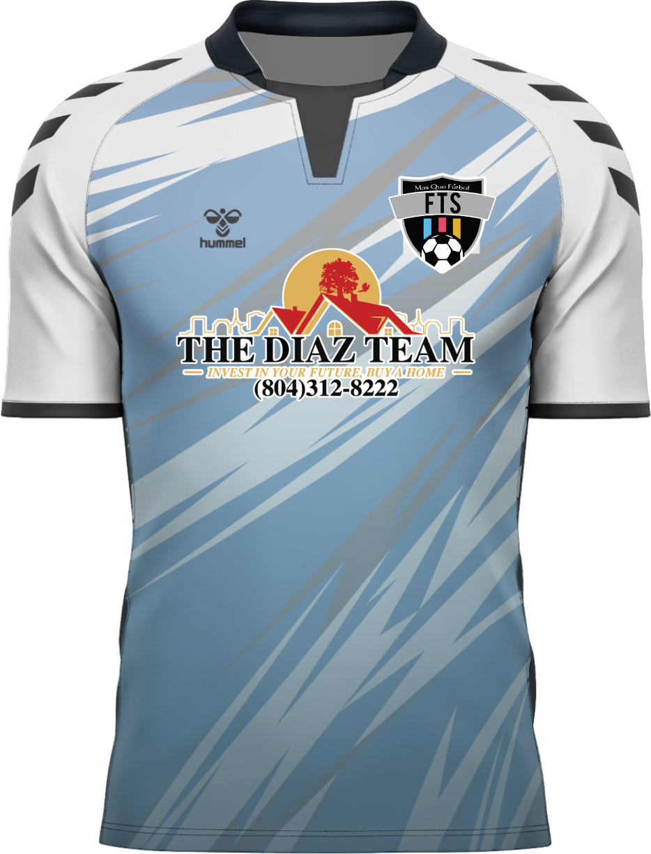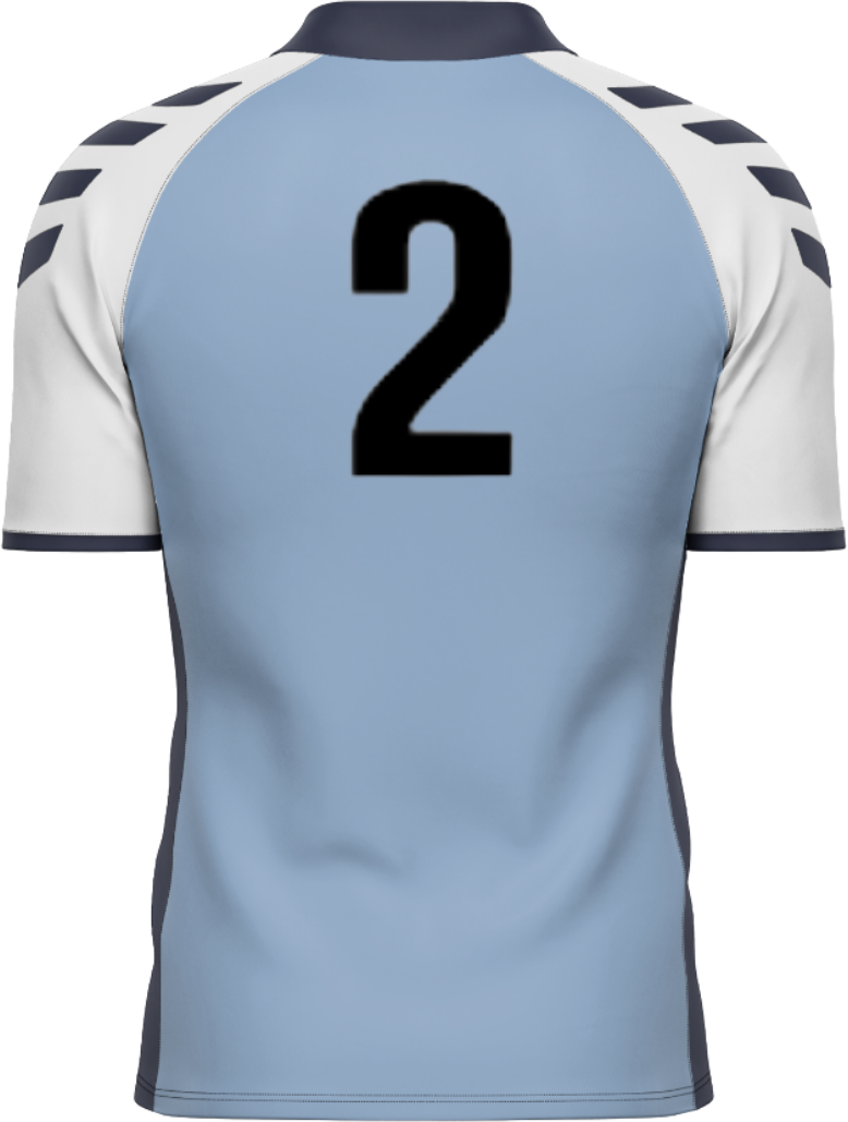 Each jersey comes customized with club/sponsor logo on front and number on back.